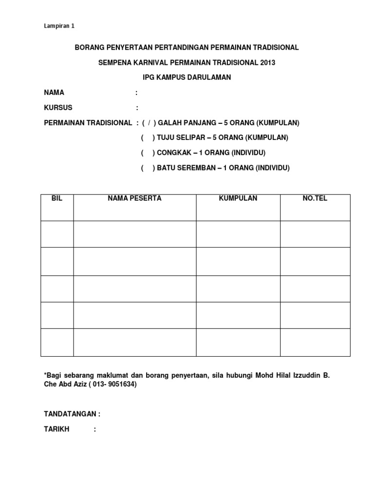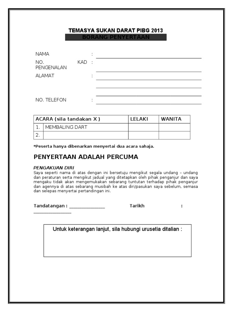 Borang Penyertaan Pertandingan Bola Tampar Pdf